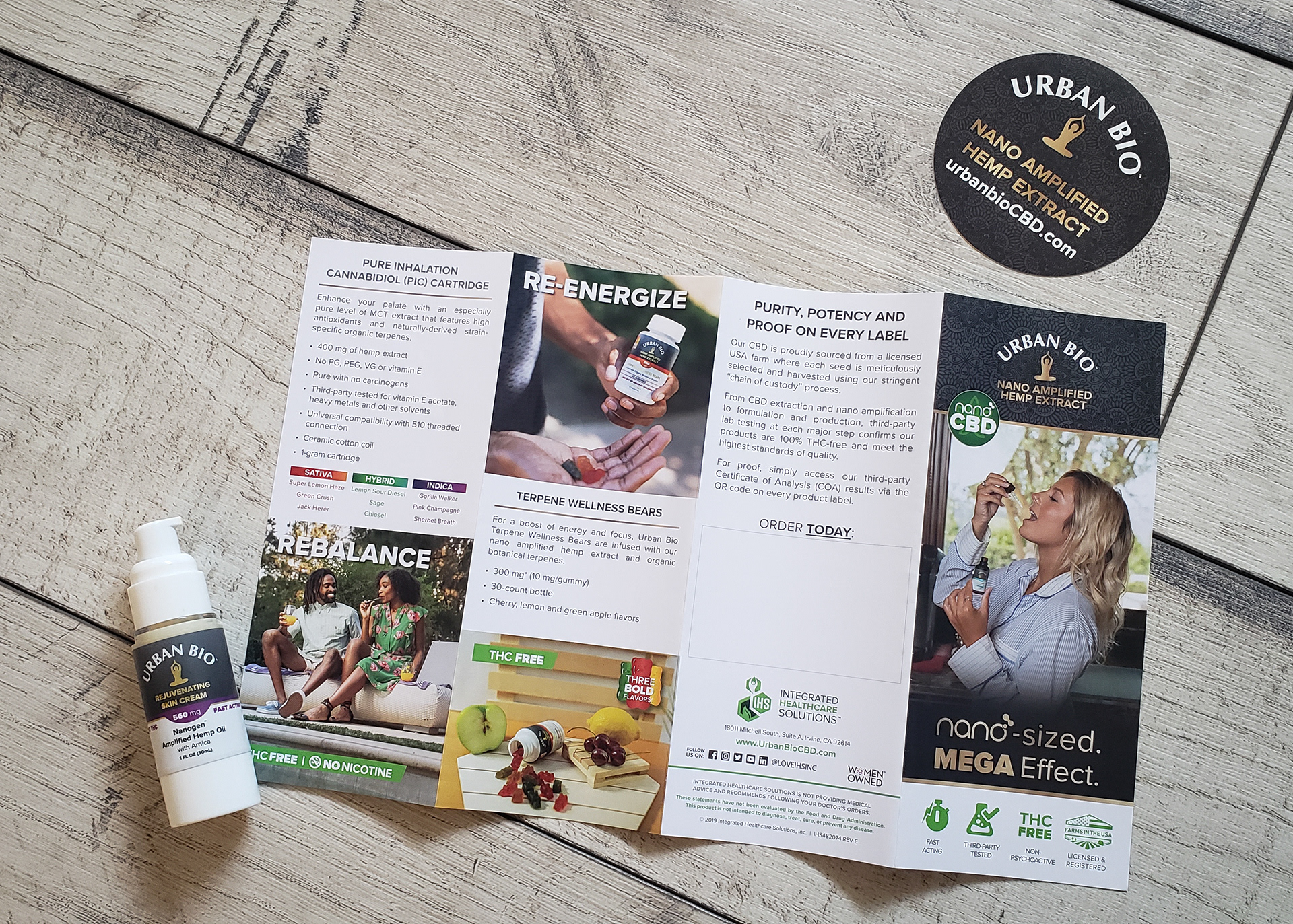 Brochure designed for the new retail line of CBD products by Integrated Healthcare Solutions, Inc.: Urban Bio.
